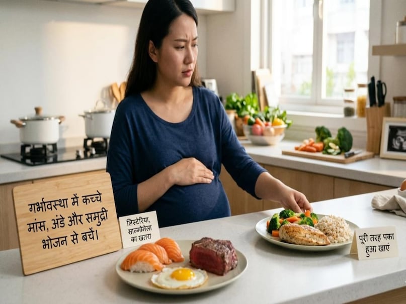 कच्चा या अधपका खाना: गर्भावस्था में कच्चा या अधपका मांस, अंडा और समुद्री भोजन खाने से बचना चाहिए. इनमें बैक्टीरिया या परजीवी हो सकते हैं, जो मां और बच्चे दोनों को संक्रमण दे सकते हैं. विशेष रूप से लिस्टेरिया और साल्मोनेला संक्रमण गर्भ में गंभीर समस्याएं पैदा कर सकते हैं.
