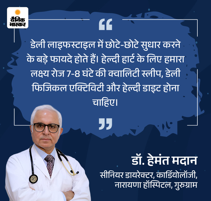 - रोज 8-9 घंटे की नींद, नियमित एक्सरसाइज और संतुलित डाइट से हार्ट डिजीज का रिस्क 57% तक कम हो सकता है।