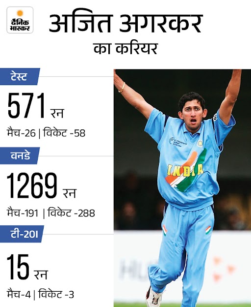 अगरकर करियर में 349 इंटरनेशनल विकेट ले चुके हैं। उन्होंने टेस्ट में 58, वनडे में 288 और टी-20 इंटरनेशनल में 3 विकेट लिए हैं। देखें उनके 3 रिकॉर्ड्स…