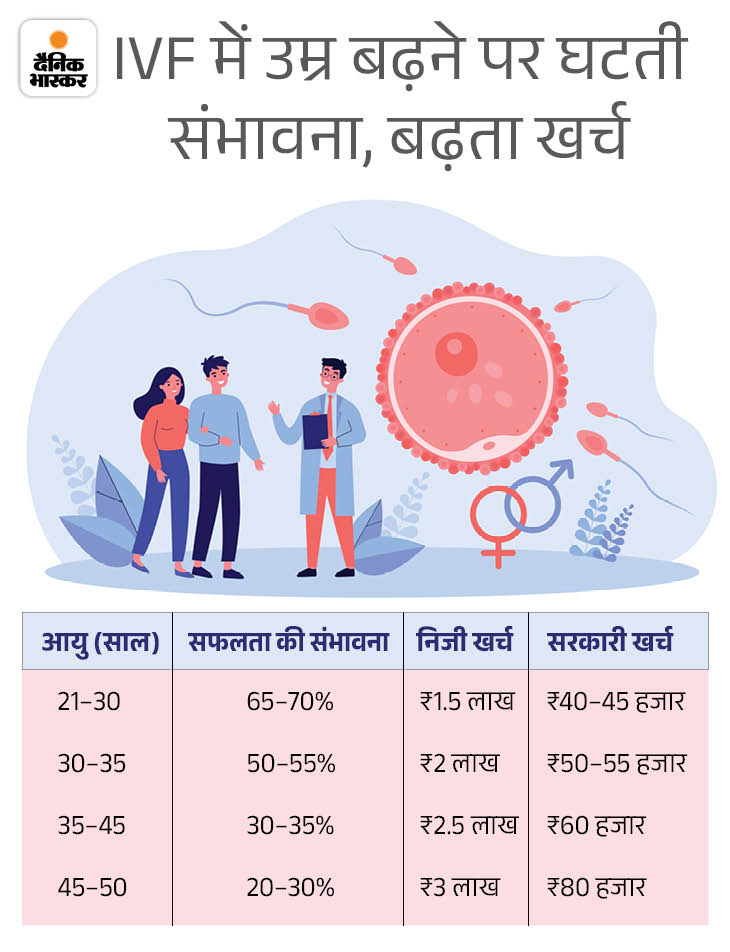 उम्र के साथ घटती है सफलता की संभावना विशेषज्ञों के अनुसार आईवीएफ की सफलता काफी हद तक महिला की उम्र पर निर्भर करती है। इसी कारण विशेषज्ञ समय रहते उपचार शुरू करने की सलाह देते हैं।