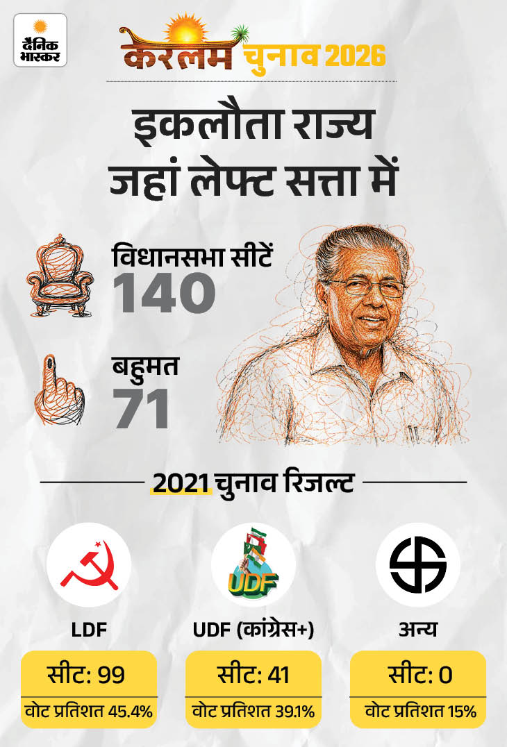 2021 में CPI(M) के पिनराई विजयन ने बतौर सीएम पहला कार्यकाल पूरा कर दोबारा सत्ता संभाली। 70 साल में केवल विजयन ऐसे सीएम ही हैं, जिन्होंने लगातार 2 बार शपथ ली।