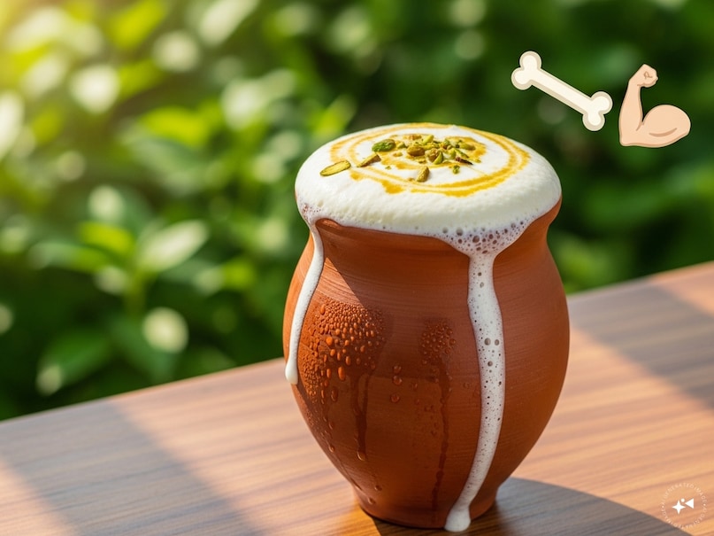 दूध न पीने वाले लोगों में अक्सर कैल्शियम की कमी हो जाती है. ऐसे में लस्सी दूध का बेहतरीन विकल्प बन सकती है. लस्सी में प्रचुर मात्रा में कैल्शियम और प्रोटीन होता है. नियमित लस्सी का सेवन हड्डियों को मजबूत बनाता है और मांसपेशियों (मसल्स) के विकास में भी मदद करता है. गर्मियों में ठंडी लस्सी न सिर्फ शरीर को ठंडक देती है, बल्कि हड्डियों और मसल्स दोनों को मजबूती प्रदान करती है. ( एआई फोटो )