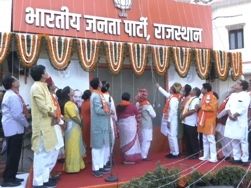 सीएम भजनलाल शर्मा ने प्रदेश बीजेपी कार्यालय और अपने निजी आवास पर पार्टी का झंडा फहराया। इस दौरान उन्होंने कार्यकर्ताओं से अपील करते हुए कहा कि हमारा लक्ष्य पार्टी को अजेय बनाने का है। स्थापना दिवस पर CM भजनलाल को पार्टी ऑफिस में नया कमरा मिला। कार्यालय में कमरा नं.-5 अब से मुख्यमंत्री के लिए रिर्जव रहेगा। इसके बाहर सीएम भजनलाल शर्मा की नेम प्लेट भी लगाई गई है। पढ़ें पूरी खबर…