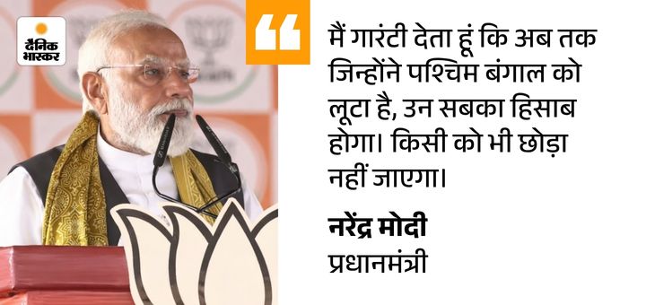 वहीं पीएम नरेंद्र मोदी ने गुरुवार को पश्चिम बंगाल में तीन बड़ी चुनावी रैलियां कीं। उन्होंने हल्दिया, आसनसोल और बीरभूम में जनसभा की। पीएम मोदी ने भाजपा की 6 गारंटी दीं। साथ ही कहा- मैं आपको एक और गारंटी भी देता हूं कि अब तक जिन्होंने प. बंगाल को लूटा है, उन सबका हिसाब होगा।