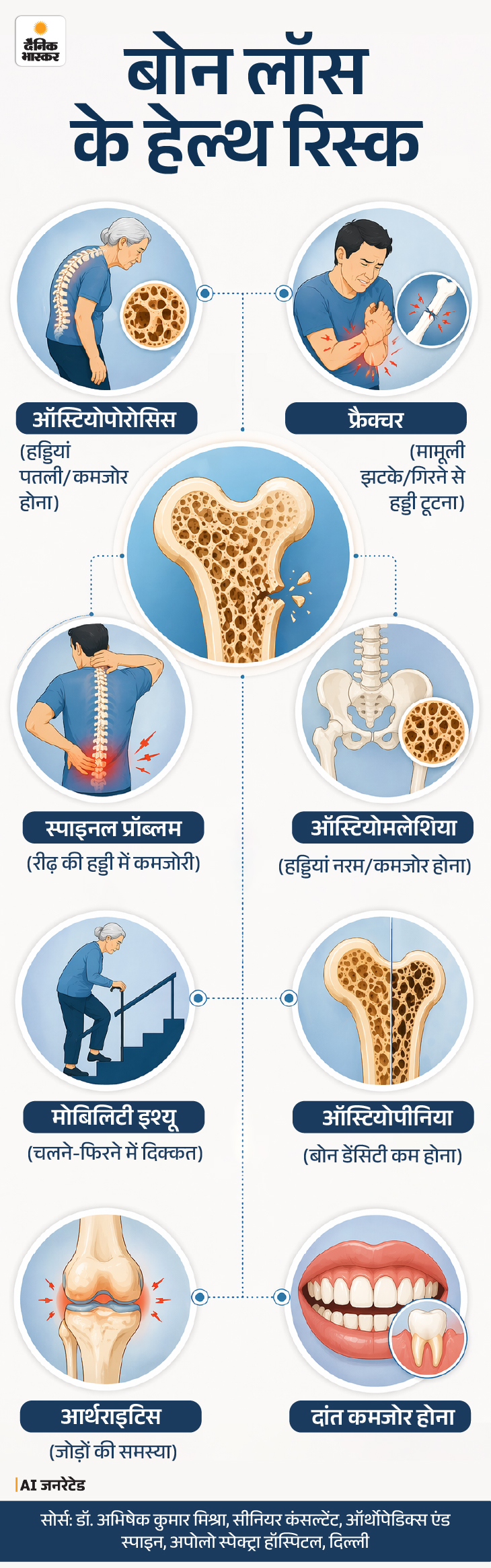 सवाल- हड्डियां कमजोर होने से किन बीमारियाें का रिस्क बढ़ता है?
