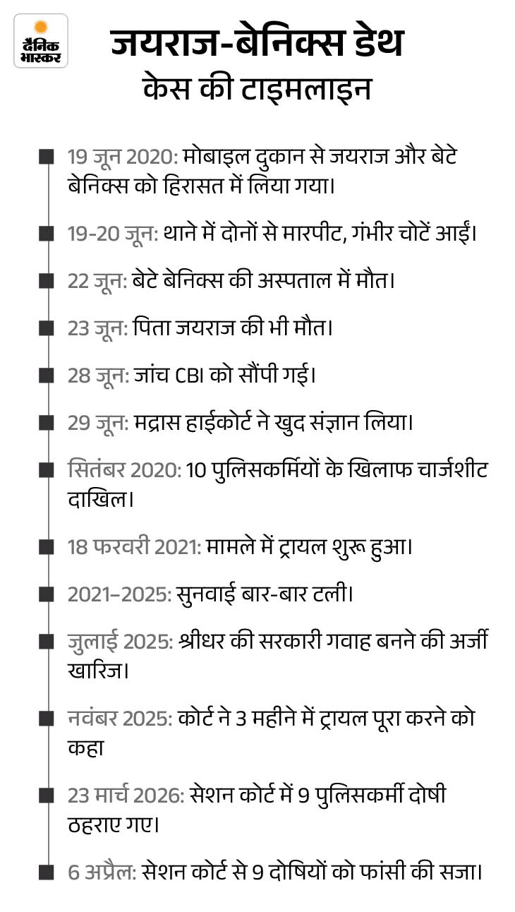 तमिलनाडु के सथानकुलम में पिता-बेटे की कस्टोडियल मौत मामले में 6 साल बाद 6 अप्रैल को मदुरै कोर्ट ने 9 पुलिसकर्मियों को दोषी ठहराया और उन्हें फांसी की सजा सुनाई। इस पूरे मामले में हेड कांस्टेबल रेवती (43) का नाम सबसे ज्यादा चर्चा में रहा।