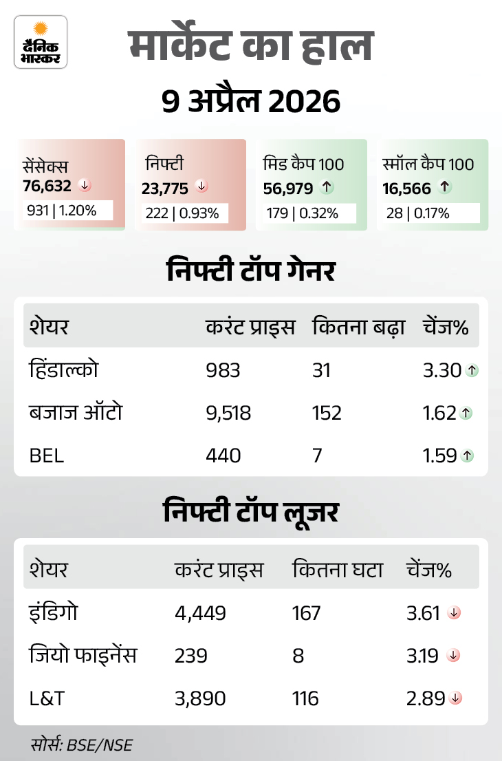 हफ्ते के आखिरी कारोबारी दिन शुक्रवार 10 अप्रैल को सेंसेक्स 919 अंक (1.20%) की तेजी के साथ 77,550 पर बंद हुआ था। निफ्टी में भी 275 अंकों (1.16%) की तेजी रही, ये 24,050 पर पहुंच गया। कारोबार में बैंकिंग और ऑटो शेयरों में खरीदारी रही।