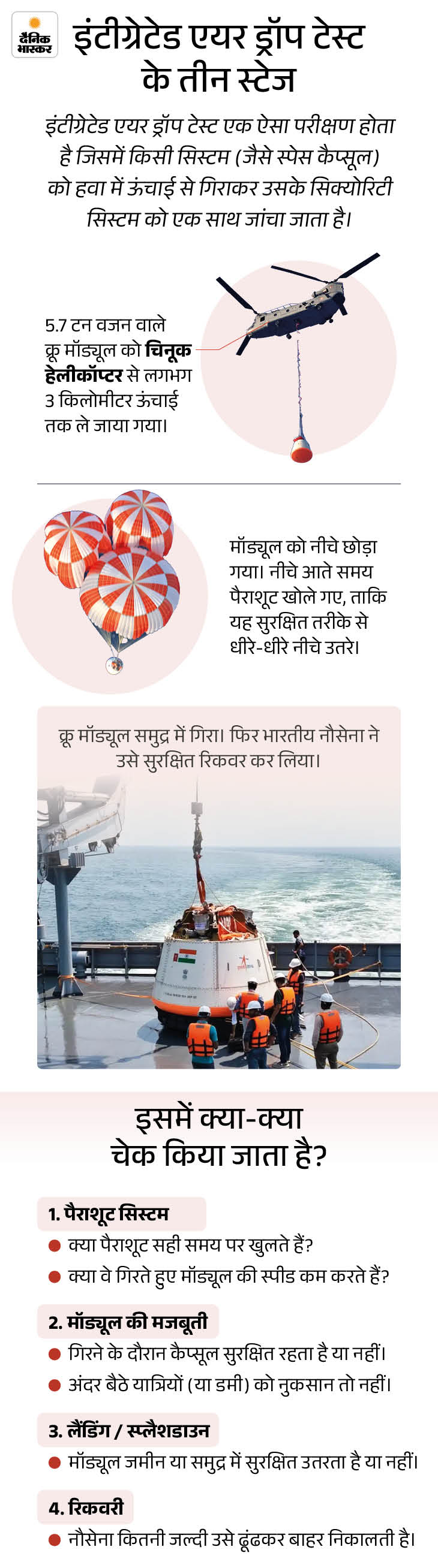पिछले 8 महीनों में क्रू कैप्सूल का यह दूसरा एयर ड्रॉप टेस्ट है। पहला टेस्ट 24 अगस्त 2025 को किया गया था।