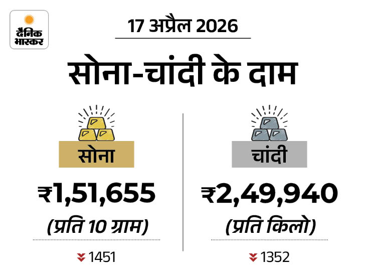 3. सोने में ₹1451, चांदी में ₹1352 की गिरावट: ईरान जंग से 49 दिन में सोना ₹7 हजार सस्ता, चांदी भी ₹18 हजार नीचे आई