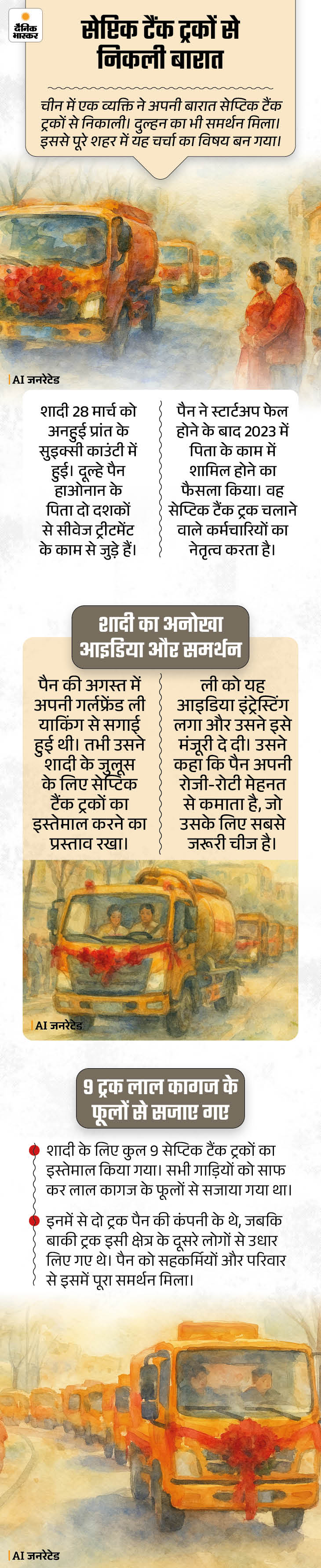 राजस्थान में मंदिर तक पहुंचने वाली 800 सीढ़ियों पर उल्टा ट्रैक्टर चढ़ाया गया। वहीं, यूपी के एक गरीब किसान को ₹14 करोड़ का टैक्स नोटिस भेज दिया गया। उधर, चीन में सेप्टिक टैंकरों में दूल्हे की बारात निकाली गई।