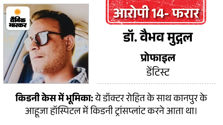 डॉ. वैभव पेशे से डेंटिस्ट है। वह किडनी ट्रांसप्लांट में क्या मदद कर रहा था, ये डॉ. रोहित और वैभव की अरेस्टिंग के बाद ही सामने आएगा।