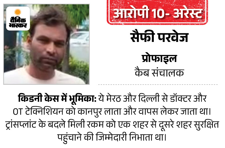 किडनी के इस केस में मेरठ के सैफी परवेज को गिरफ्तार किया है। सैफी डॉक्टरों के आने-जाने के लिए गाड़ियों की व्यवस्था करता था। वह खुद डॉ. अफजल को 3 बार अपनी गाड़ी से गाजियाबाद से कानपुर लेकर आया था। एक वीडियो में तो अफजल करीब 15 लाख रुपए के साथ बेड पर लेटा था। सैफी उसका वीडियो बना रहा था। वीडियो के आखिर में वह खुद भी दिखता था।