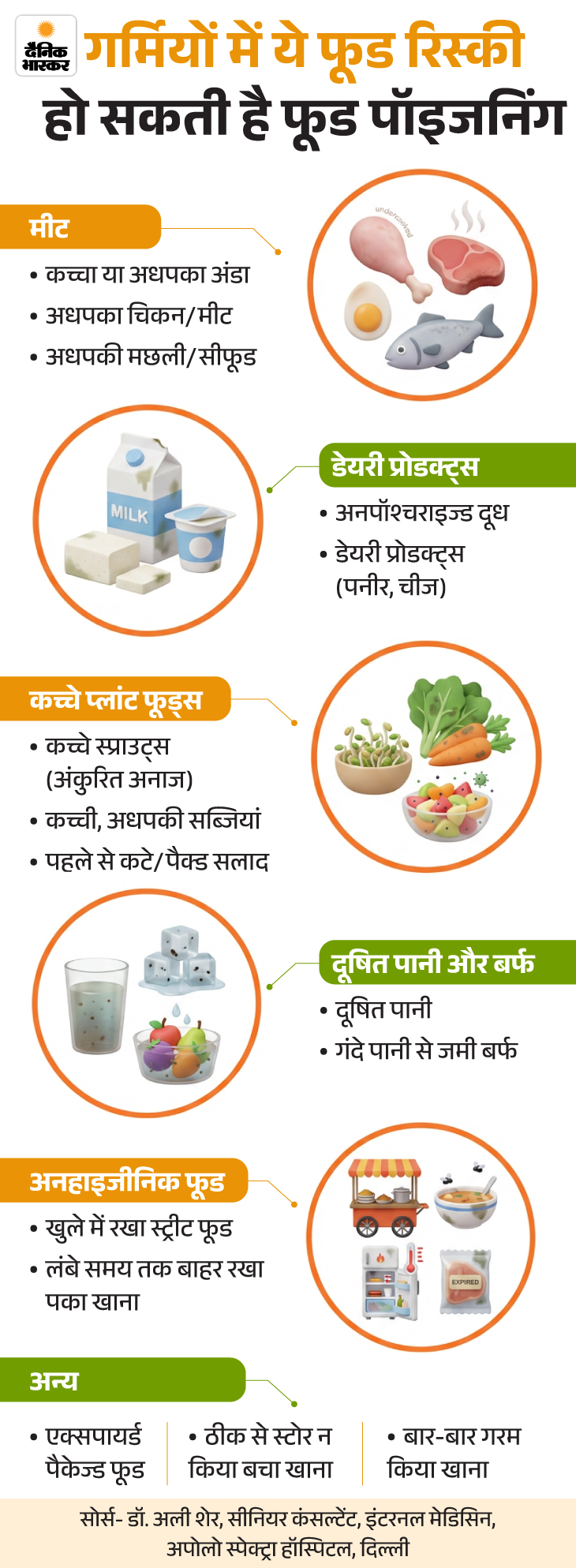 जवाब- कुछ फूड्स में बैक्टीरिया जल्दी पनपते हैं। इसलिए इनसे फूड पॉइजनिंग का रिस्क ज्यादा होता है। नीचे पॉइंटर्स में देखिए–
