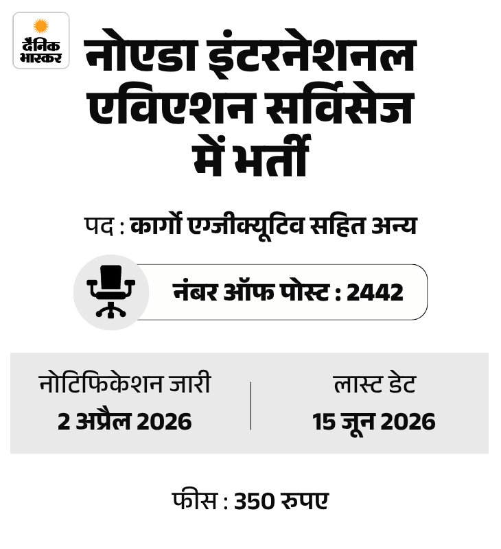 2. नोएडा इंटरनेशनल एविएशन में 2442 भर्ती, 10वीं, 12वीं पास को मौका