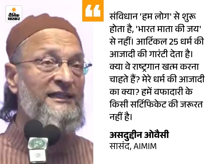न्यूज एजेंसी ANI को 15 फरवरी को दिए इंटरव्यू में ओवैसी ने कहा कि संविधान ‘हम लोग’ से शुरू होता है, ‘भारत माता की जय’ जैसे नारों से नहीं। उन्होंने कहा कि आर्टिकल 25 धर्म की आजादी के बुनियादी अधिकार की गारंटी देता है। पूरी खबर पढ़ें…