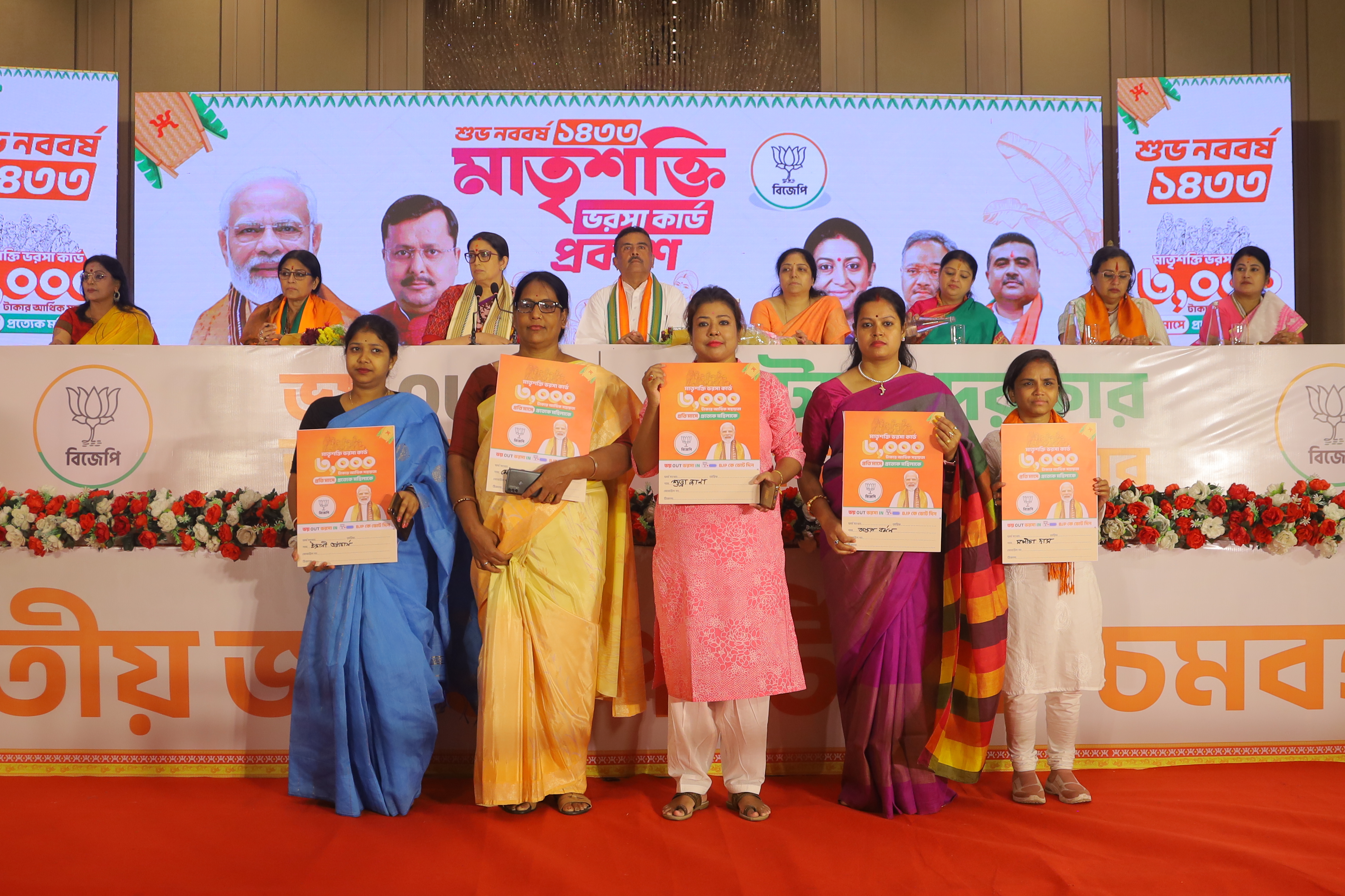 भाजपा ने बुधवार को पश्चिम बंगाल में मातृशक्ति भरोसा कार्ड लॉन्च किया। सरकार बनने पर राज्य की महिलाओं को हर महीने ₹3,000 देने का वादा किया गया है। कार्यक्रम में सुवेंदु अधिकारी और स्मृति ईरानी मौजूद रहीं। बंगाल में दो फेज में वोटिंग होगी। पहले चरण का मतदान 23 अप्रैल को होगा।