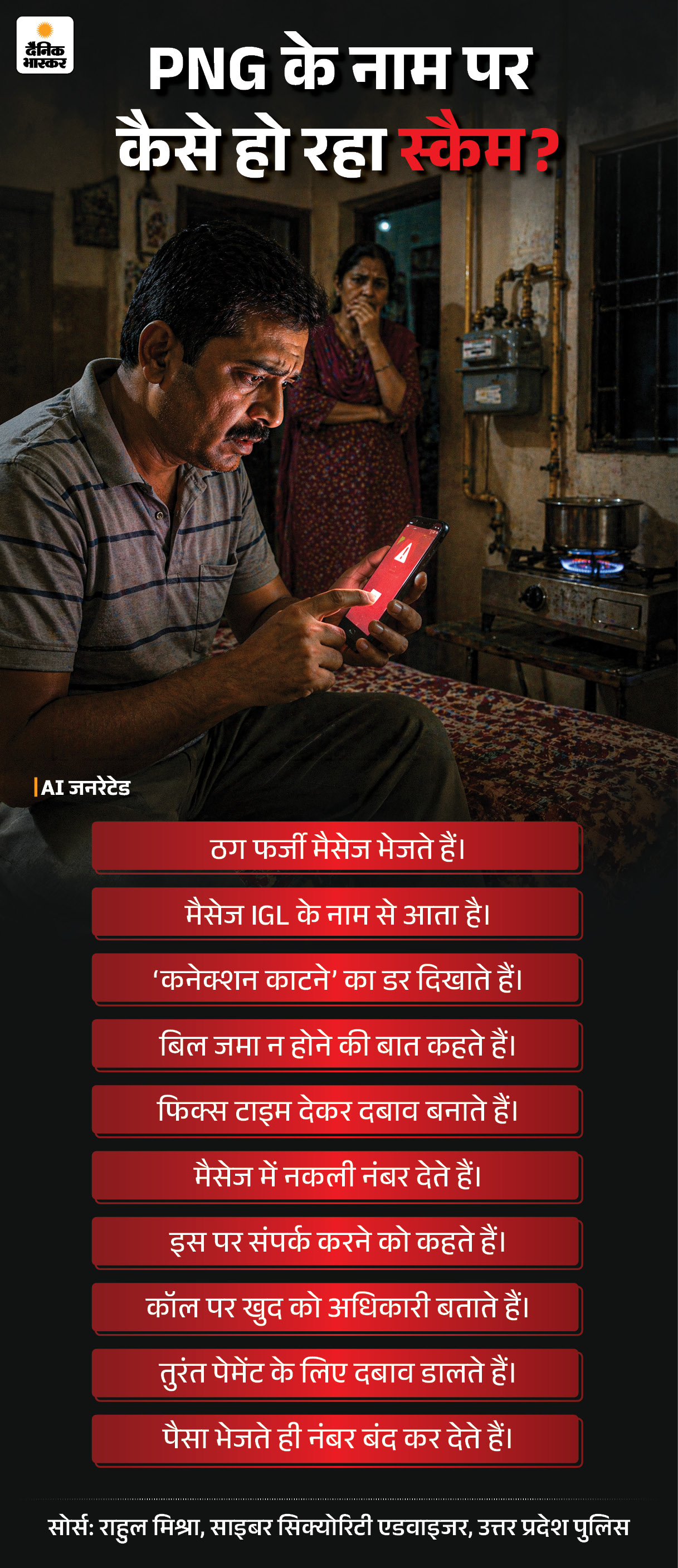 इस फैसले के बाद जहां PNG पाइपलाइन है, वहां तेजी से कनेक्शन लिए जा रहे हैं। साइबर ठग इस डर का फायदा उठाकर ठगी को अंजाम दे रहे हैं। यह ठगी देश की लीडिंग गैस डिस्ट्रीब्यूशन कंपनी ‘इंद्रप्रस्थ गैस लिमिटेड’ (IGL) के ग्राहकों के साथ हो रही है। खतरे को देखते हुए IGL ने अलर्ट जारी किया है और अपने उपभोक्ताओं को सतर्क रहने की सलाह दी है।