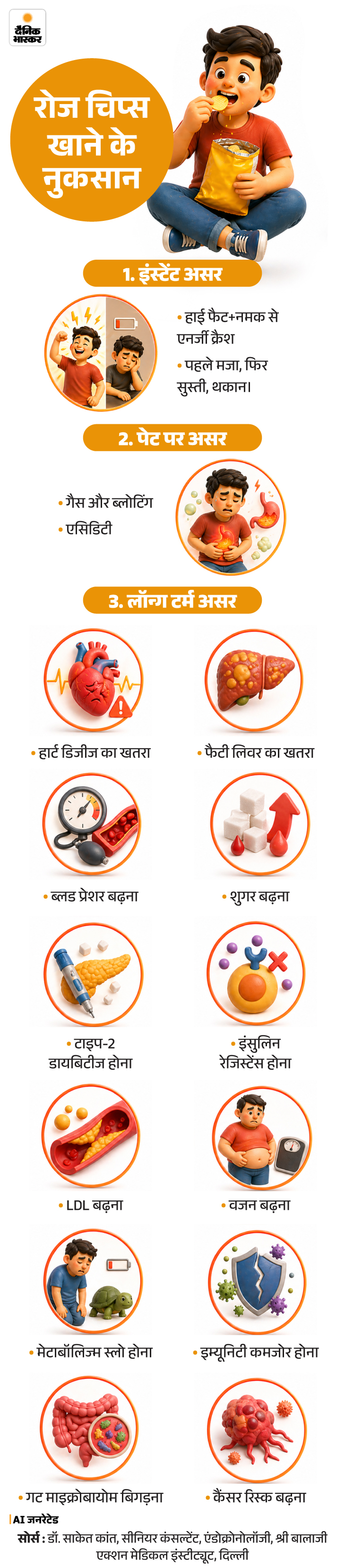 सवाल- अगर कोई रोज चिप्स खाए तो उससे शरीर पर क्या असर पड़ता है?