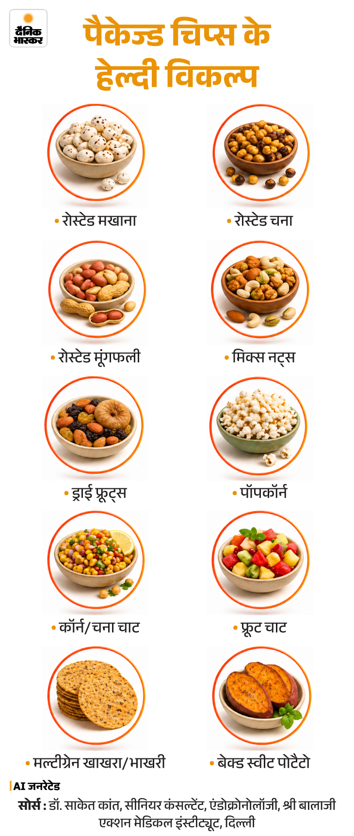 ध्यान रखें- चिप्स चाहे पैकेज्ड हों या घर पर बने हों, ये रोज खाने के लिए सही नहीं हैं। घर के बने चिप्स कभी-कभार खा सकते हैं।
