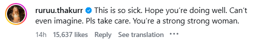 रुरु ठाकुर ने लिखा, ‘यह बहुत गलत है। उम्मीद है तुम ठीक हो। अपना ध्यान रखो। तुम बहुत मजबूत हो।’