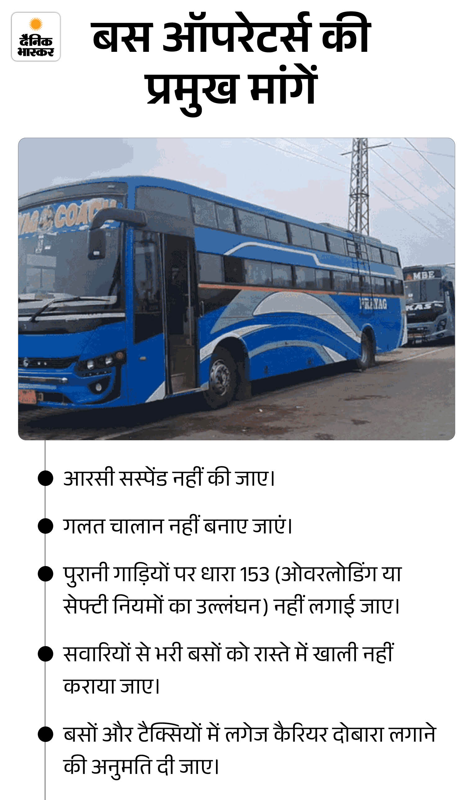 बस ऑपरेटर्स का कहना है कि मोटर व्हीकल एक्ट की धारा 153 में भारी-भरकम चालान बनाए जा रहे हैं।