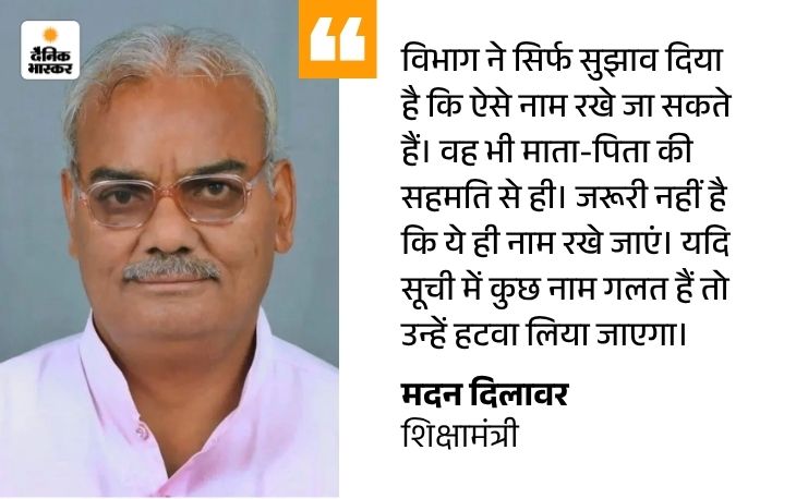 - राजस्थान संस्कृत विश्वविद्यालय में दर्शनशास्त्र विभाग के डीन शास्त्री कौसलेंद्रदास कहते हैं- भारतीय शास्त्र परपंरा में नामकरण जीवन का प्रमुख संस्कार है। भारतीय संस्कृति में नाम को व्यक्ति से अधिक महत्व दिया गया है। शिक्षा विभाग की सूची में दिए गए नामों में सुधार की आवश्यकता है।