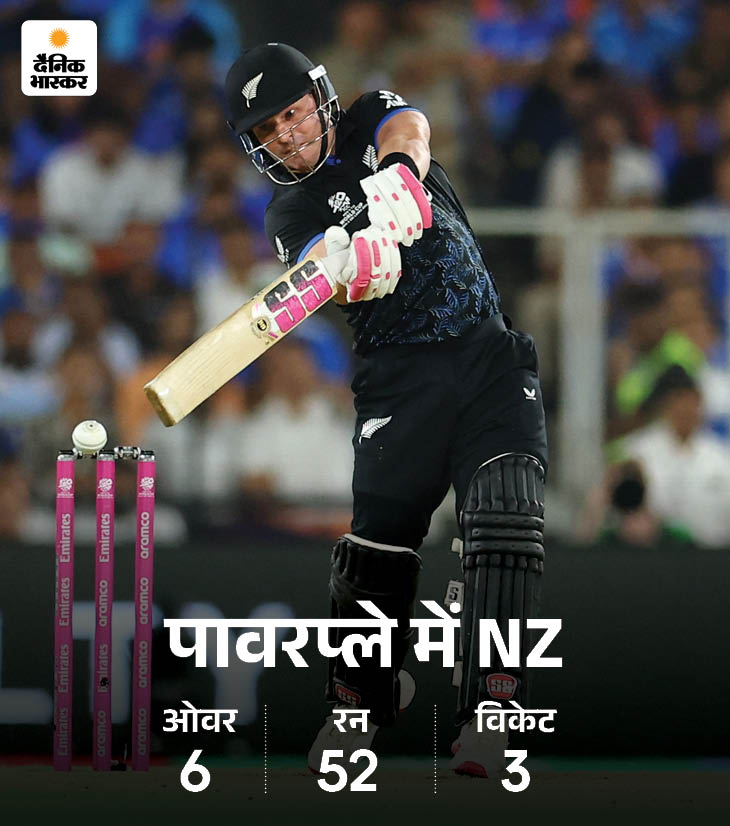 न्यूजीलैंड ने पावरप्ले में अपनी फिफ्टी पूरी कर ली, लेकिन टीम ने 3 विकेट भी गंवा दिए। 6 ओवर के बाद स्कोर 52 रन रहा। फिन एलन, रचिन रवींद्र और ग्लेन फिलिप्स आउट हुए। अक्षर पटेल को 2 और जसप्रीत बुमराह को 1 विकेट मिला।
