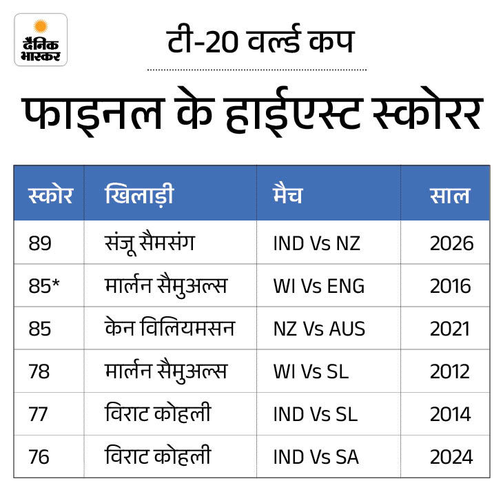 • Sanju Samson; T20 World Cup Final LIVE Score | India Vs New Zealand; Hardik Pandya Jasprit Bumrah