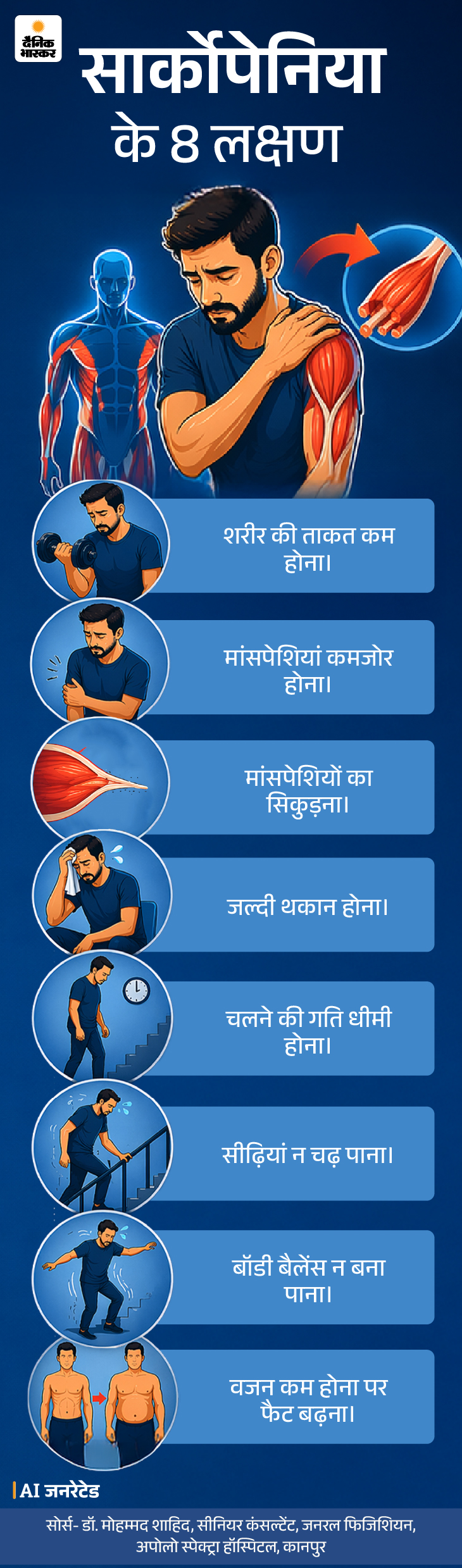 फर्ज करिए, आपकी उम्र 35 साल है। सीढ़ियां चढ़ते वक्त अब पहले जैसी फुर्ती नहीं रही। थोड़ा सा वजन उठाते ही सांस फूलने लगती है। ये बदलाव शरीर के अंदर चल रही एक साइलेंट समस्या ‘सार्कोपेनिया’ का संकेत हो सकता है।