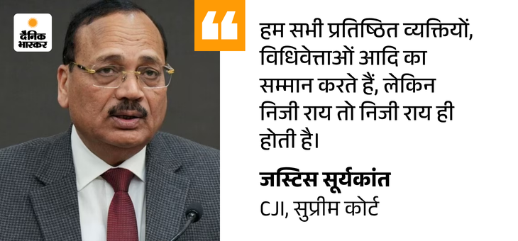 CJI सूर्यकांत ने कहा, हम सभी प्रतिष्ठित व्यक्तियों, विधिवेत्ताओं आदि का सम्मान करते हैं, लेकिन निजी राय निजी राय ही होती है।