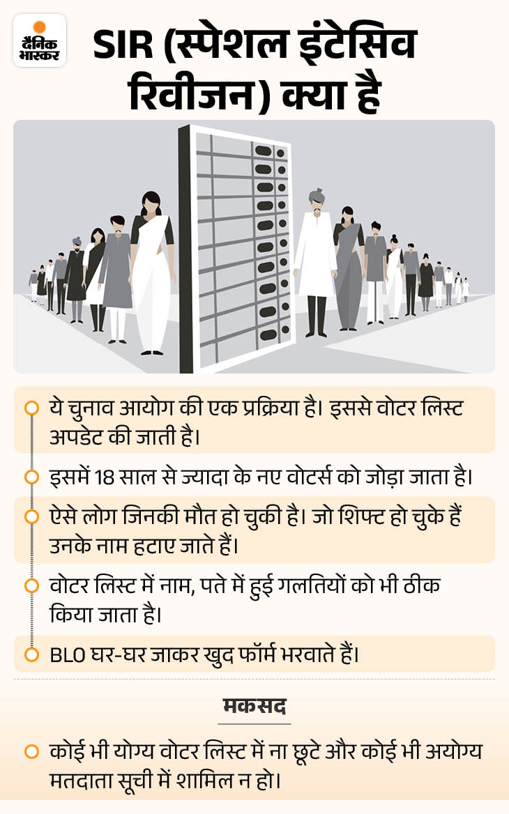 1951 से लेकर 2004 तक का SIR हो गया है, लेकिन पिछले 21 साल से बाकी है। इस लंबे दौर में मतदाता सूची में कई परिवर्तन जरूरी हैं। जैसे लोगों का माइग्रेशन, दो जगह वोटर लिस्ट में नाम होना। डेथ के बाद भी नाम रहना। विदेशी नागरिकों का नाम सूची में आ जाने पर हटाना। कोई भी योग्य वोटर लिस्ट में न छूटे और कोई भी अयोग्य मतदाता सूची में शामिल न हो। पहले फेज में बिहार में हुआ। फाइनल लिस्ट में 7.42 करोड़ वोटर्स हैं।