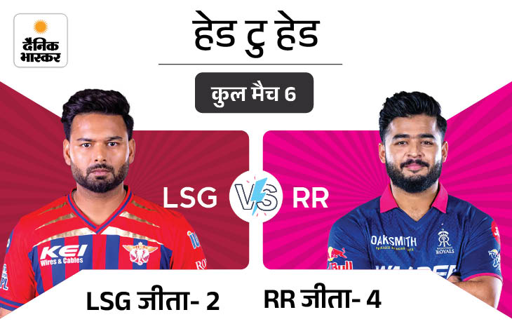 लखनऊ सुपर जायंट्स (LSG) और राजस्थान रॉयल्स (RR) के बीच अब तक कुल 6 मुकाबले खेले गए हैं। हेड टु हेड में राजस्थान का पलड़ा भारी रहा है, जिसने 4 मैच जीते हैं, जबकि लखनऊ को सिर्फ 2 जीत मिली हैं। पिछले साल एक ही मैच हुआ था। इसमें लखनऊ को जीत मिली थी।