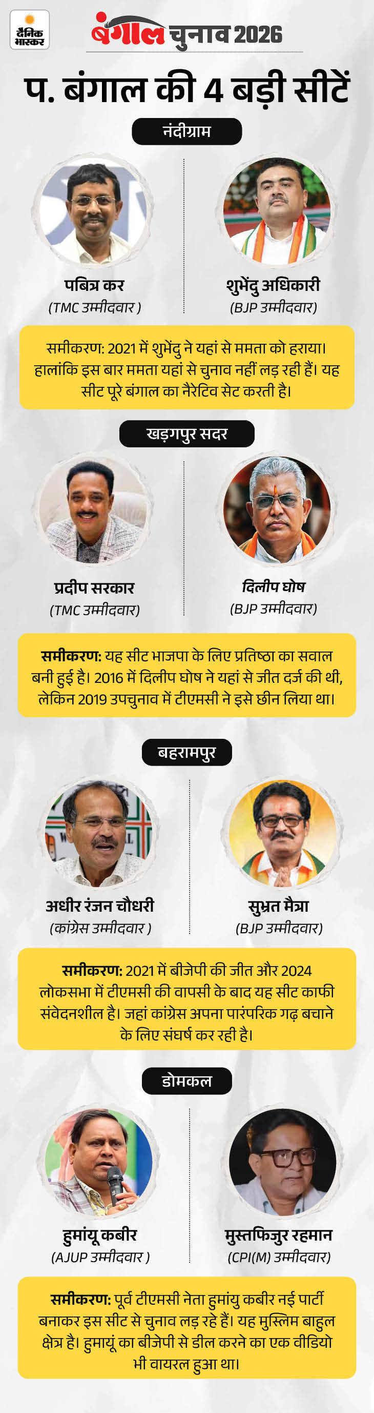 - वर्तमान में राजनीति TMC vs BJP के बीच मुख्य मुकाबले में बदल गई है, जबकि कांग्रेस-लेफ्ट सीमित भूमिका में हैं।