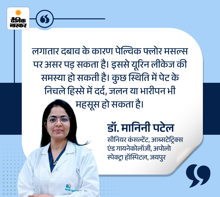 - इससे पेल्विक फ्लोर मसल्स कमजोर पड़ती हैं जो ब्लैडर और यूरेथ्रा (यूरिन बाहर निकलने का रास्ता) को सपोर्ट करती हैं।