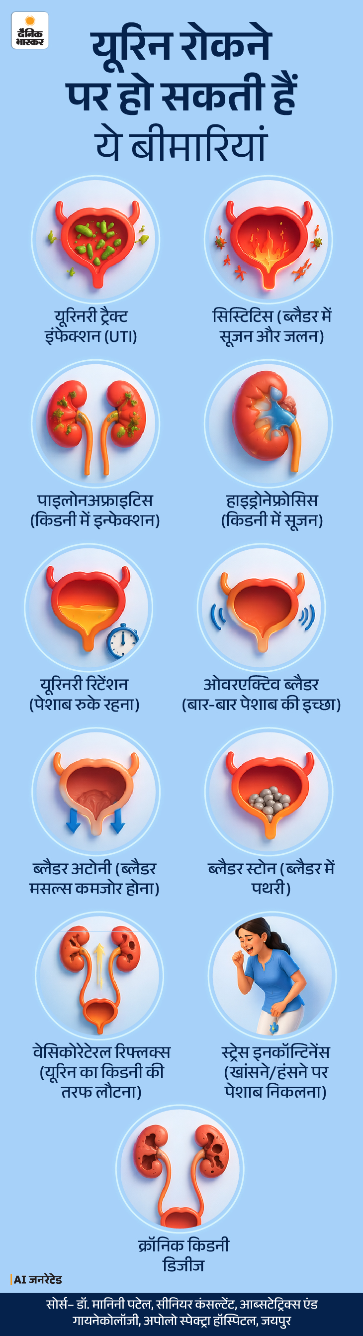 सवाल- ज्यादा देर तक यूरिन होल्ड करने से कौन-कौन से हेल्थ रिस्क हो सकते हैं?