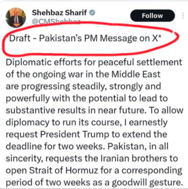 ईरान संकट के बीच पाकिस्तान के प्रधानमंत्री शहबाज शरीफ का X पोस्ट विवादों में आ गया है। पोस्ट की एडिट हिस्ट्री में “ड्राफ्ट- पाकिस्तानी PM का मैसेज” दिखने के बाद सोशल मीडिया पर इसे लेकर कई दावे किए जा रहे हैं।